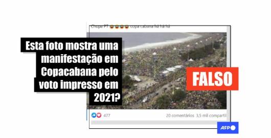 Imagem Eleições 2022 Publicado em 02/08/2021 Foto da praia de Copacabana tomada por uma multidão circula na internet ao menos desde 2015