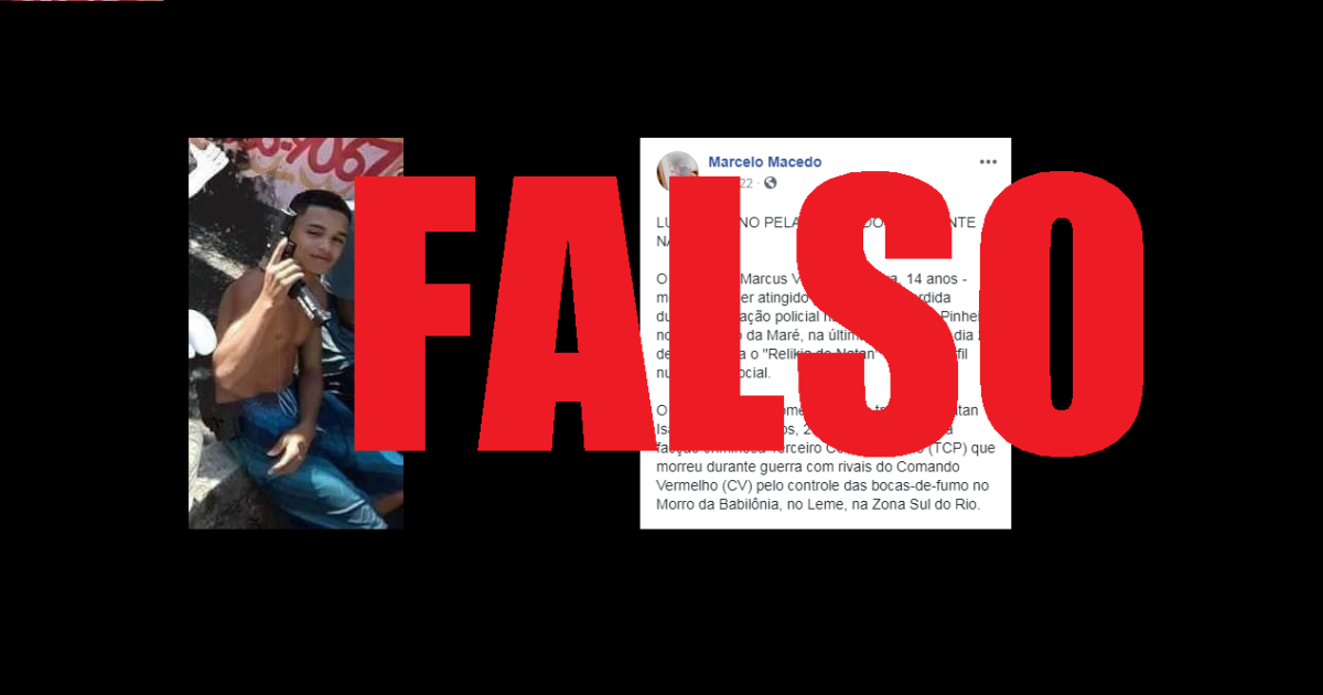 Marcus Vinicius Silva, o jovem baleado no Complexo da Maré, foi fotografado segurando uma submetralhadora? É falso.