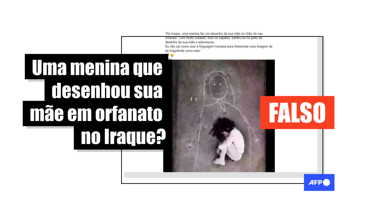 “No Iraque, uma menina fez um desenho da sua mãe no chão do seu orfanato. Com muito cuidado, tirou os sapatos, sentou-se no peito do desenho da sua mãe e adormeceu. Eu não sei como usar a linguagem humana para interpretar uma imagem de tal magnitude como esta”, dizem publicações no Facebook (1, 2, 3) e Twitter.