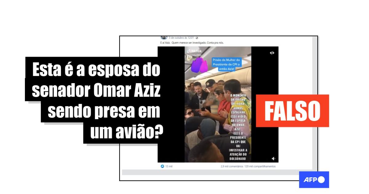 “Prisão da Mulher do Presidente da CPI o então Aziz! O momento da prisão da ladra. Vamos espalhar esse vídeo da esposa do Omar Aziz. Ele é o presidente da CPI que vai investigar a atuação do Bolsonaro”, diz o texto sobreposto ao vídeo, que em outubro de 2021 registrou mais de 120 mil compartilhamentos no Facebook (1, 2), e que já havia circulado em maio de 2021 (1, 2, 3).
