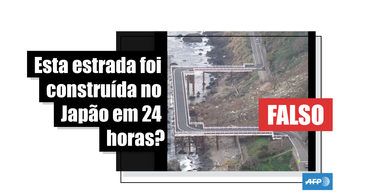 “Estrada pré moldada, obra de emergência feita no Japão em 24 horas para não atrapalhar o fluxo”, são as legendas das imagens (1, 2), que viralizaram nas redes sociais no final de setembro, incluindo Twitter e Instagram.