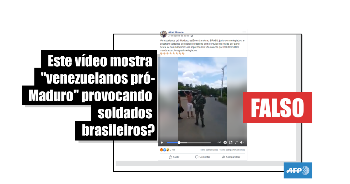 “Venezuelanos pró Maduro, estão entrando no BRASIL junto com refugiados, e desafiam soldados do exército brasileiro com o intuído do revide por parte deles. Ai nas mancheres da imprensa lixo vão colocar que BOLSONARO manda exercito agredir refugiados [sic]”, diz uma das postagens, compartilhada mais de 16 mil vezes no Facebook. A alegação também circula em menor escala no Twitter.