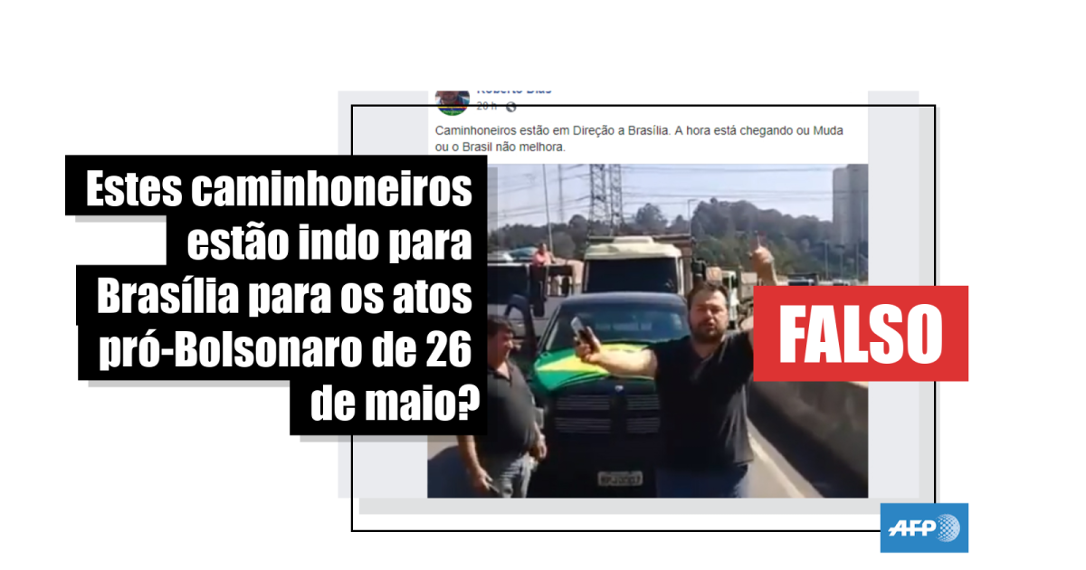 “Caminhoneiros estão em direção a Brasília. A hora está chegando, ou muda, ou o Brasil não melhora”, diz a legenda do vídeo no Facebook, compartilhado mais de 8.500 vezes desde a sua publicação em 22 de maio deste ano.