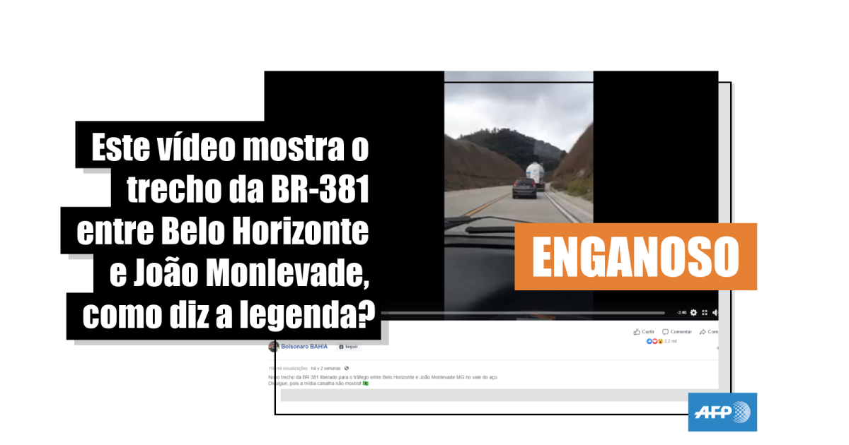 “Novo trecho da BR 381 liberado para o tráfego entre Belo Horizonte e João Monlevade MG no vale do aço. Divulgue, pois a mídia canalha não mostra!”, diz a legenda de uma das publicações largamente compartilhadas desde o início de agosto.