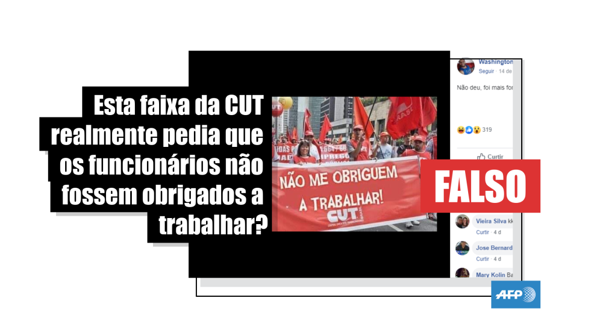 Não, esta faixa da CUT não pedia que funcionários não fossem obrigados a trabalhar