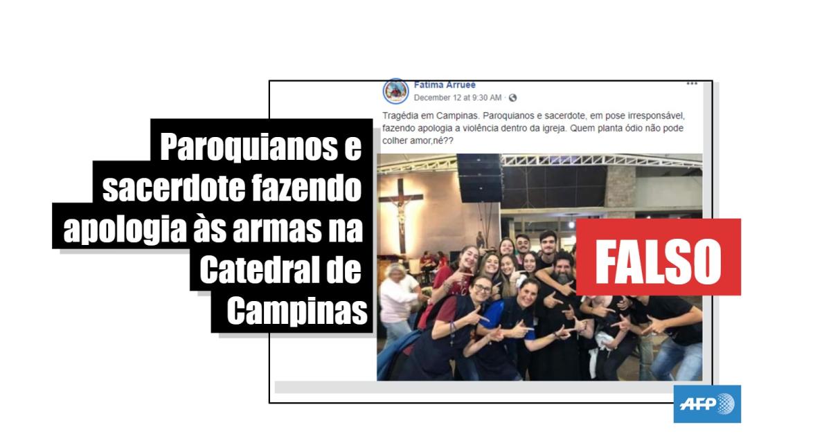 "Tragédia em Campinas. Paroquianos e sacerdote, em pose irresponsável, fazendo apologia a violência dentro da igreja. Quem planta ódio não pode colher amor, né?", diz a descrição de uma postagem feita um dia depois do ataque, compartilhada milhares de vezes no Facebook. Uma internauta comentou: "Apologia às armas… violências… Infelizes… Não foi isso que o Mestre pregou quando caminhou sobre a Terra… Tristeza".