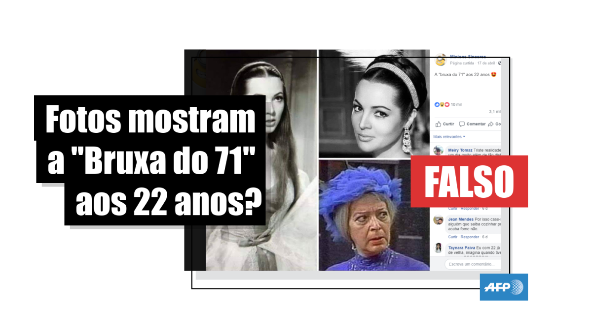 “A ‘bruxa do 71’ aos 22 anos”, afirma uma publicação viral que foi compartilhada ao menos 3.100 vezes no Facebook desde 17 de abril de 2019. Diversas versões da montagem aparecem em outras publicações (1, 2, 3 e 4) na rede social.