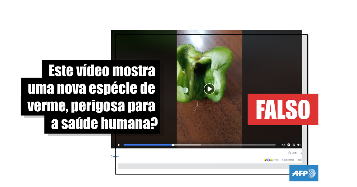 Em inglês, o vídeo circula no YouTube ao menos desde 6 de agosto passado na conta de um usuário, que inclui conteúdo da Índia. Jornalistas da AFP em Nova Délhi confirmaram que as vozes ouvidas ao fundo falam em panjabi, um idioma da região fronteiriça entre Índia e Paquistão. “Olha, está vivo e se mexe… Agora está saindo, tem um rabo comprido. Olha o que saiu do pimentão”, dizem.