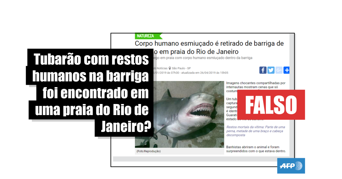Em suma, este caso do tubarão que comeu uma pessoa realmente aconteceu, mas há nove anos e nas Bahamas, não este ano e no Rio de Janeiro. Além disso, trata-se de um tubarão-tigre, não de um tubarão-branco, como também havia sido afirmado erroneamente pela matéria.