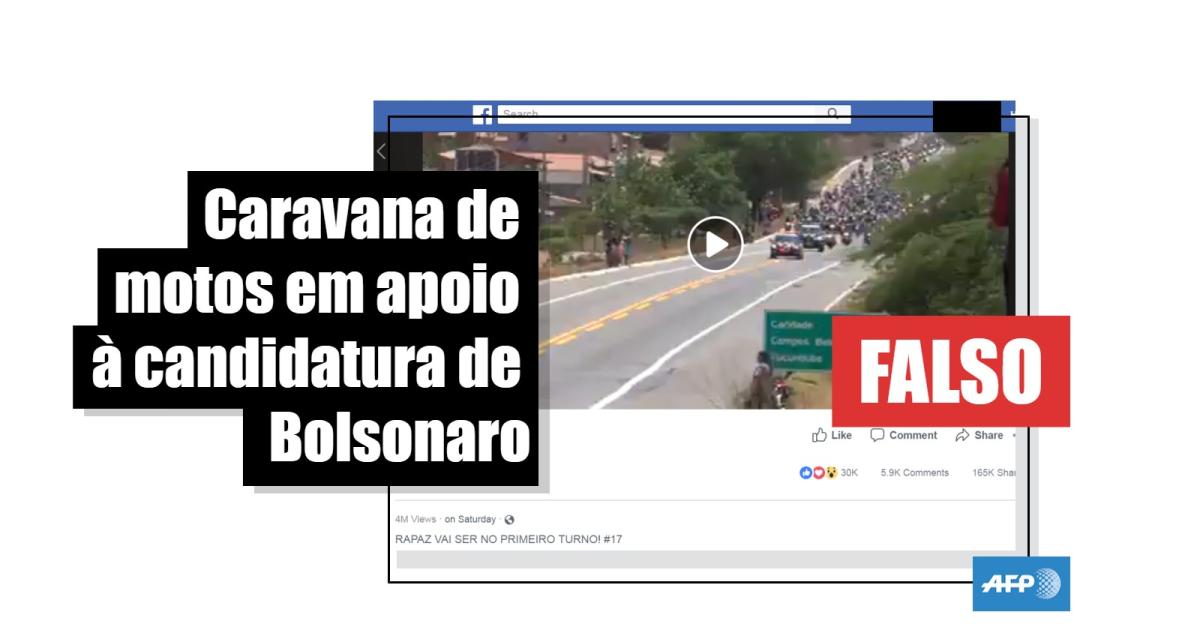 Checamos a informação. Na realidade, o vídeo foi feito durante a 32a Moto Romaria 2018 no último dia 16 de setembro, um evento que reuniu milhares de motocicletas em uma caravana de Fortaleza a Canindé, a aproximadamente a 120 quilômetros da capital cearense. Segundo os organizadores, trata-se de “um evento único do motociclismo no Ceará. (...) Muitos vão pela fé e religiosidade, mas o evento é aberto a todos”.