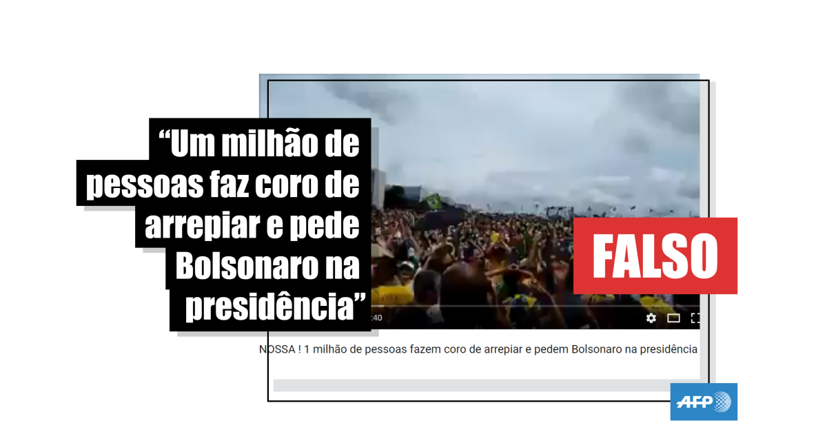 "Um milhão de pessoas faz coro de arrepiar e pede Bolsonaro na presidência”, afirma a descrição do outro vídeo, que teve mais de um milhão de visualizações e aproximadamente 75 mil compartilhamentos no Facebook em pouco mais de um dia. Uma usuária comentou: “Estamos voltando a nos lembrar do que é SER BRASILEIRO! Estamos recuperando o nosso Patriotismo, o nosso aaaaamor pelo País! Que lindo, Brasil! #Bolsonaro17”.