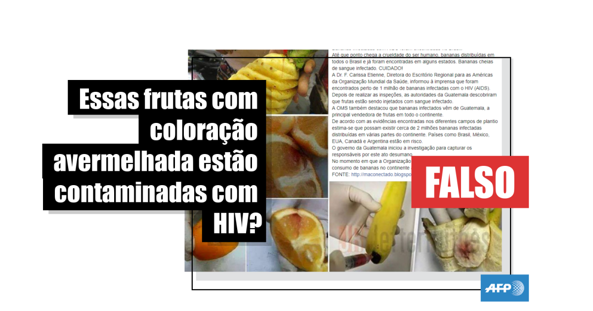A Organização Pan-Americana da Saúde (OPS) descartou a possibilidade de que esses casos ocorram. “A informação sobre frutas que transmitem HIV é falsa. O vírus do HIV morre rapidamente fora do corpo [humano]. Não é possível se infectar por contatos cotidianos como beijos, abraços, nem por compartilhar objetos pessoais, água ou alimentos”, afirmou à equipe de checagem da AFP uma porta-voz da organização.