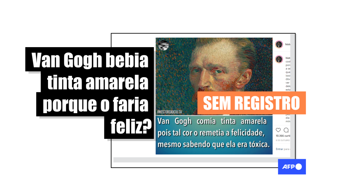 “Van Gogh tomava tinta amarela porque a considerava uma cor alegre e achava que ficaria feliz fazendo isso. A tinta tinha chumbo. O chumbo no sistema nervoso provoca depressão. Van Gogh tomava tinta amarela achando que aquilo o faria bem, mas não”, afirma uma das publicações, compartilhadas mais de 3,4 mil vezes no Facebook (1, 2, 3) desde fevereiro de 2015, sobre o pintor holandés Vincent Van Gogh (1853-1890).