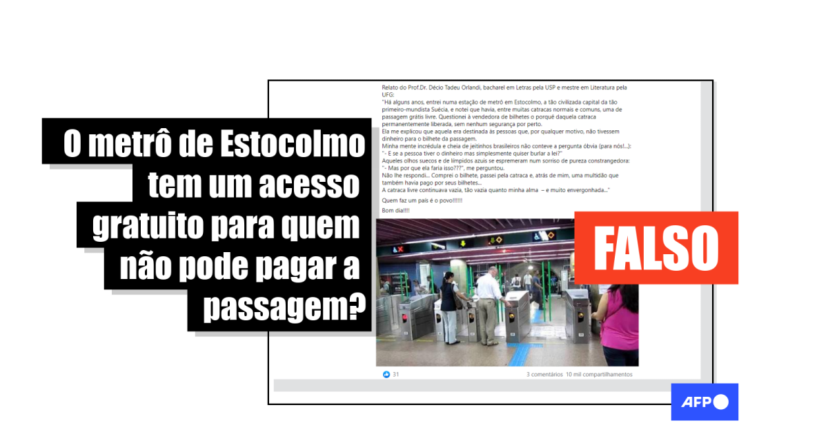 A equipe de checagem da AFP entrou em contato com a empresa de transporte público de Estocolmo, Storstockholms Lokaltrafik, que indicou que “não é verdade” o que afirmam nas publicações viralizadas.