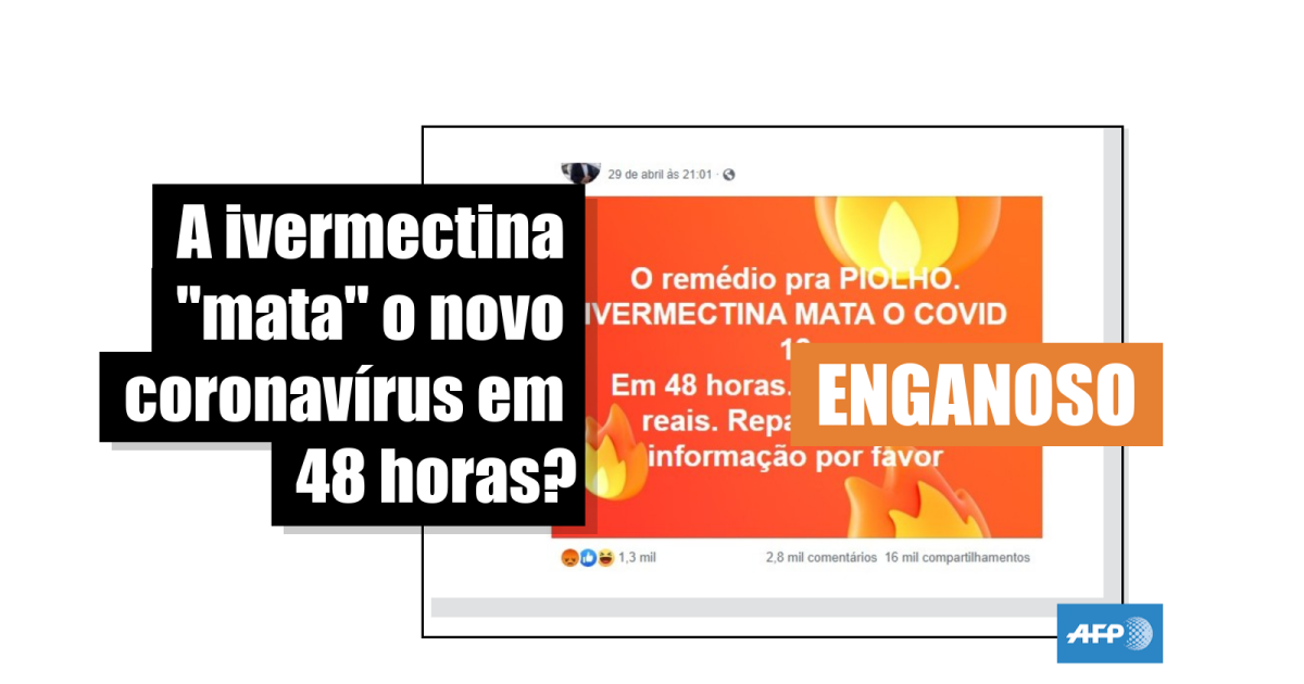 “O remédio pra piolho ivermectina mata o COVID 19 [sic] em 48 horas e só custa 10 reais. Repassem essa informação por favor”, dizem as publicações compartilhadas mais de 21 mil vezes no Facebook (1, 2, 3) e no Twitter desde o último dia 29 de abril. Alegação semelhante também foi replicada milhares de vezes em espanhol.