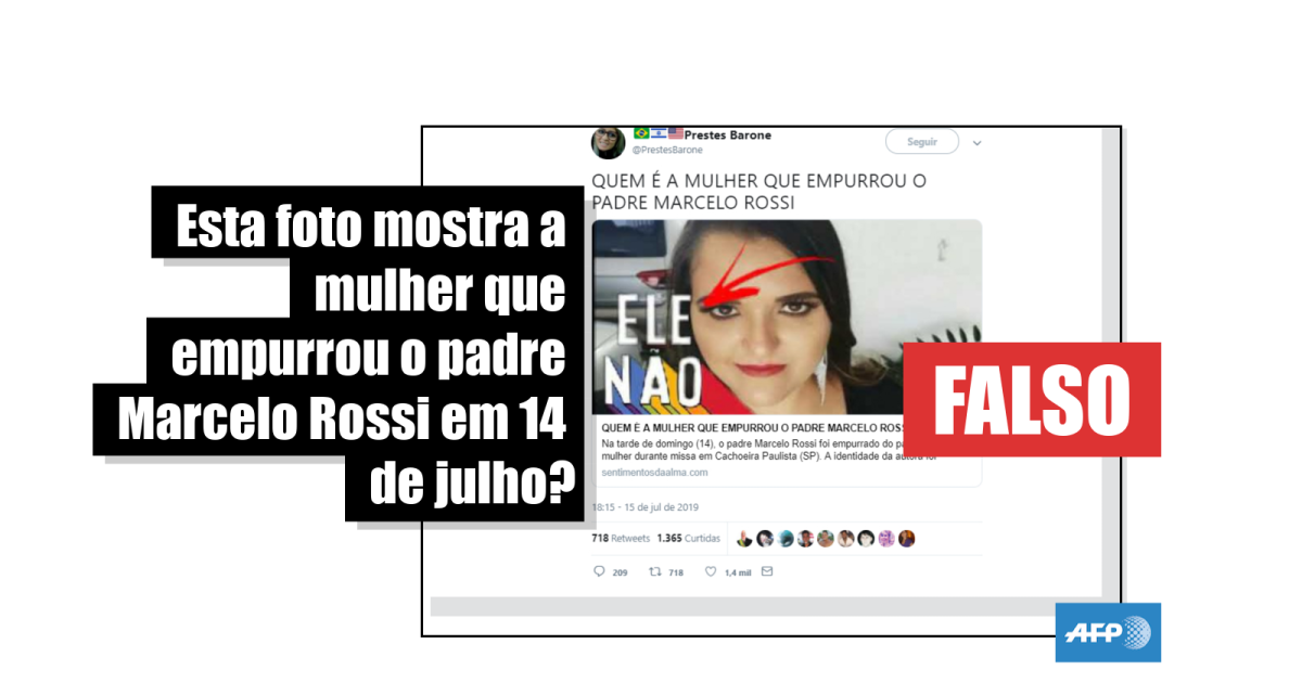 “Foi ela que agrediu o Padre Marcelo… devidamente explicado”, diz uma das publicações, compartilhada centenas de vezes no Facebook desde 15 de julho. “Só podia ser petralha mesmo”, reagiu uma usuária à postagem. “Uma petista mentirosa”, comentou outra.