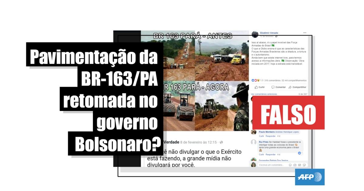 No dia 25 de fevereiro 2019, o Exército brasileiro já havia desmentido fotografias similares em sua conta no Twitter, dizendo que “são imagens de obras diversas, como na SC-438 e no aeroporto do RN. Nenhuma das imagens é da BR-163”.