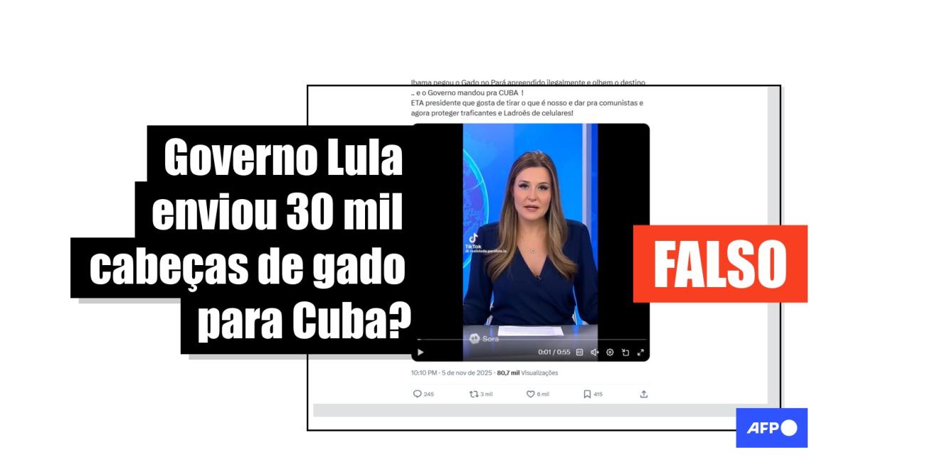 Imagem Publicado em 10/11/2025 É falso que governo apreendeu 30 mil cabeças de gado e enviou para Cuba; vídeo foi criado por IA