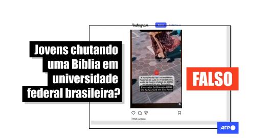 Gravação de pessoas chutando uma Bíblia foi feita nos Estados Unidos, não em universidade no Brasil