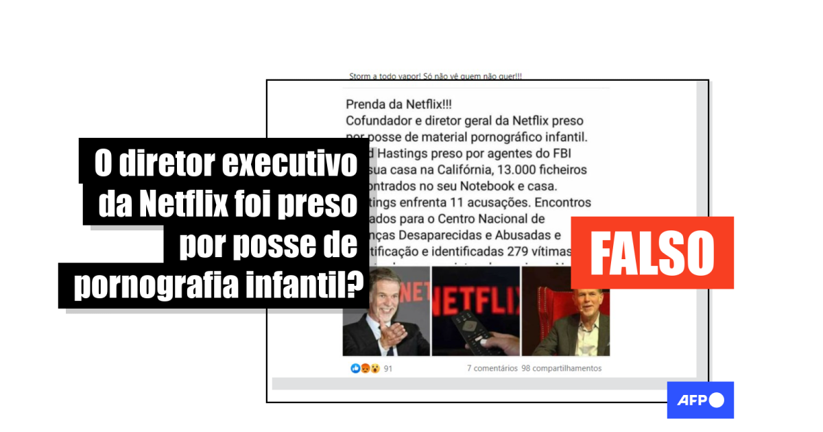 Em resumo, o diretor executivo da Netflix, Reed Hastings, não foi preso por posse de pornografia infantil. A suposta notícia foi publicada por apenas um site, que logo deletou a alegação. Não há qualquer outro registro de que uma prisão tenha ocorrido. A desinformação surge em meio a uma campanha de boicote à Netflix, devido à divulgação do filme francês “Mignonnes”, acusado de sexualizar crianças e de promover a pedofilia.
