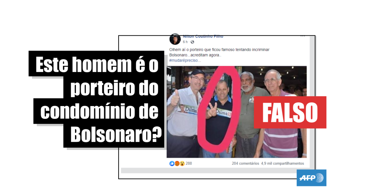 No entanto, o homem visto na imagem com um adesivo de campanha da ex-presidente Dilma Rousseff (2011-2016) não é o porteiro do condomínio, cujo nome não foi divulgado pela imprensa, nem pela polícia.