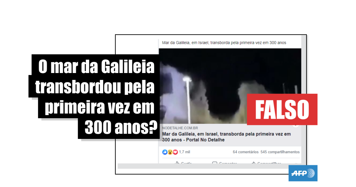 Uma busca pelas palavras-chave em espanhol “mar de Galilea” e “desbordado” (“transbordado”, em tradução livre para o português) no Google, pois foi o idioma cujo vídeo viralizou inicialmente nas redes, levou a um site que desmentia a informação e mostrava, por sua vez, a mesma gravação em um tuíte de 12 de março, um mês antes.