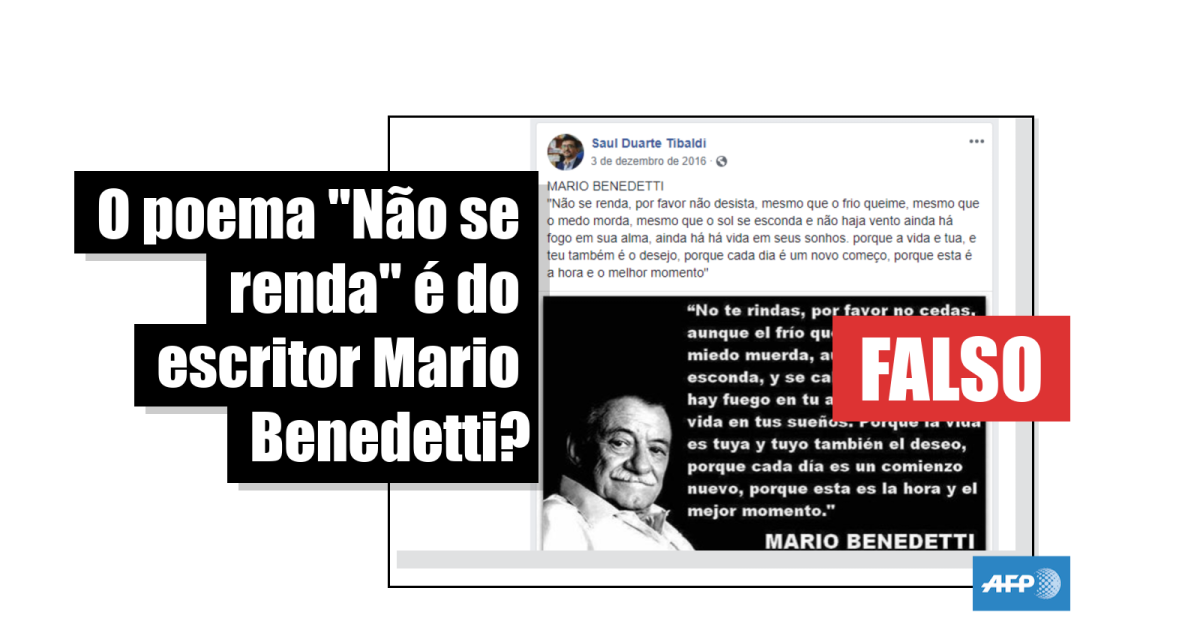 A professora de Literatura no Uruguai, presidente da Fundação Mario Benedetti e autora do livro “Benedetti, um mito discretíssimo” (em tradução livre), Hortensia Campanella, confirmou à AFP que o poema não pertence à obra do escritor uruguaio.
