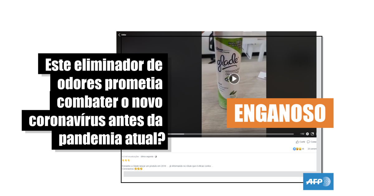 Na gravação é possível ouvir, em tradução livre: “Acabo de comprar este eliminador de odores e ele tem uma peculiaridade: mata 99,9% das bactérias, germes e vírus. Contudo, o que me chama a atenção, é que na parte de trás especifica as bactérias e vírus os quais ele ataca. Aparece, especificamente, o coronavírus. O coronavírus humano. Como assim? O que me chama mais a atenção é que este produto foi fabricado em novembro de 2018, ou seja, antes que, supostamente, existisse o coronavírus”, diz uma pessoa, mostrando um frasco do eliminador de odores da marca Glade e, posteriormente, o produto Lysol.