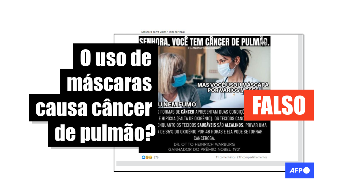 O médico Alfredo Silva, do Instituto Nacional do Câncer do Chile, assegurou à equipe de checagem da AFP que “não existe evidência científica que estabeleça um vínculo causal entre seu uso (de máscara) e o risco de alguma neoplasia maligna”.