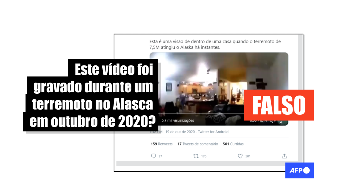 “Esta é uma visão de dentro de uma casa quando o terremoto de 7,5M atingiu o Alaska há instantes” e “Veja um vídeo no interior de uma casa, do terremoto de 7,5 - registrado em ontem ao sul das Ilhas Aleutas”, foram algumas das legendas que acompanharam o vídeo, que circulou no Facebook (1) e no Twitter (1).
