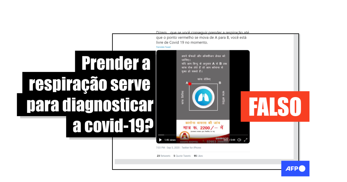 “Se você conseguir prender a respiração até que o ponto vermelho se mova de A para B, você está livre de Covid 19 no momento”, dizem as publicações compartilhadas no Facebook (1, 2, 3), junto a um breve vídeo com inscrições em hindi, no qual pode-se ver um ponto vermelho percorrendo o perímetro de um quadrado.