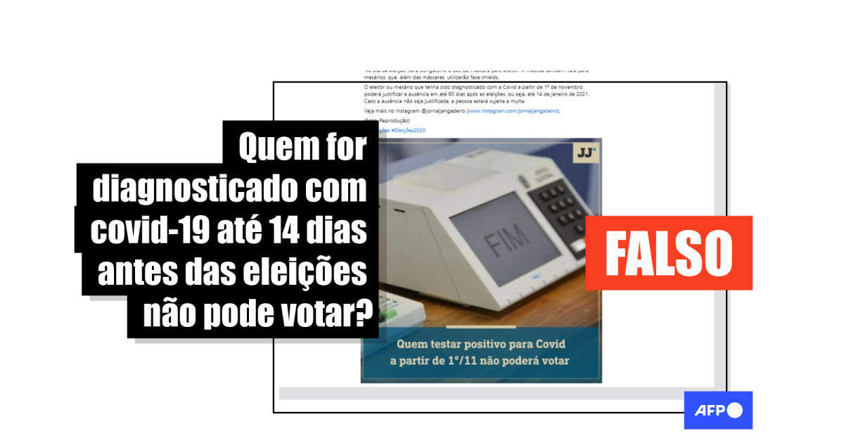 “Eleições 2020: quem tiver sido diagnosticado com covid-19 a partir de 1º de novembro não poderá votar”, começa texto compartilhado mais de 300 vezes no Facebook (1, 2, 3), Instagram (1, 2, 3) e em múltiplos artigos (1, 2, 3) desde o início de novembro.