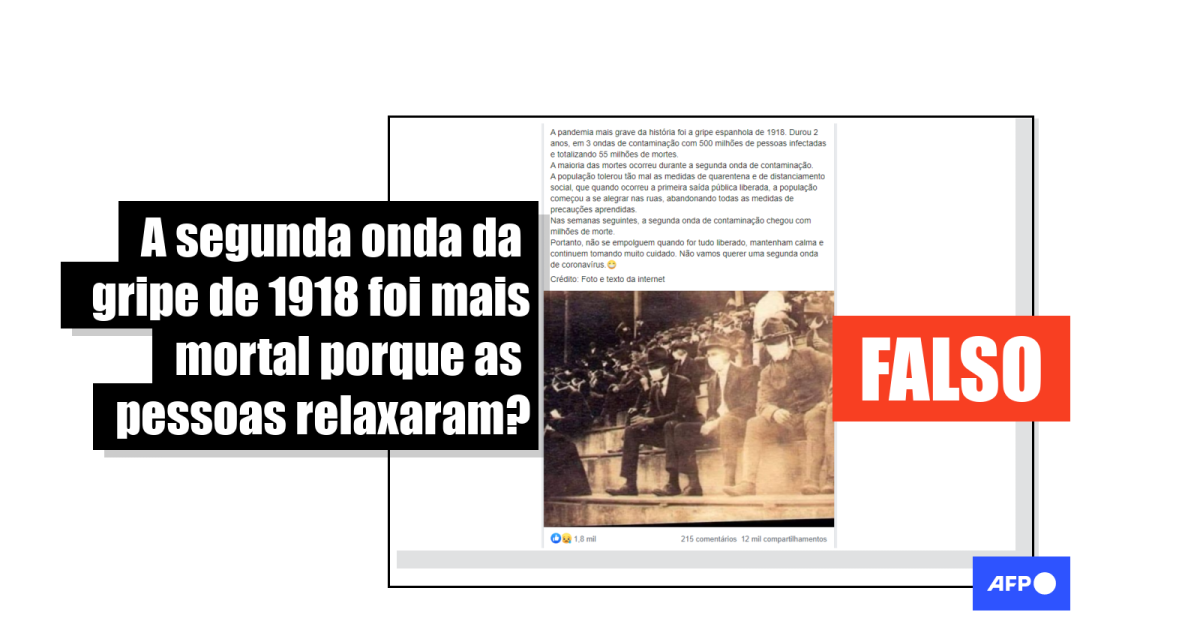 O AFP Checamos já verificou outras publicações enganosas envolvendo a gripe de 1918-1919 surgidas em meio à pandemia do novo coronavírus.