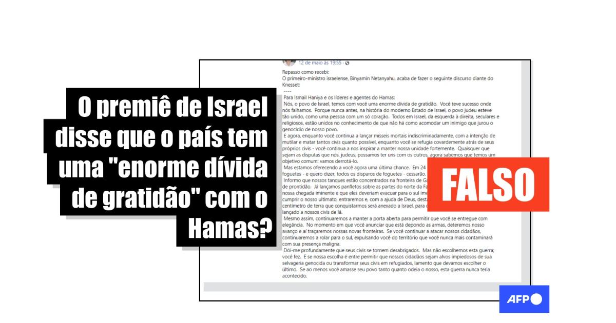 Segundo o conteúdo, que também circulou amplamente em espanhol e inglês, Netanyahu teria dado ao Hamas um ultimato de 24 horas para deter o lançamento de mísseis como parte de um acordo no qual Israel também cessaria a ação militar.