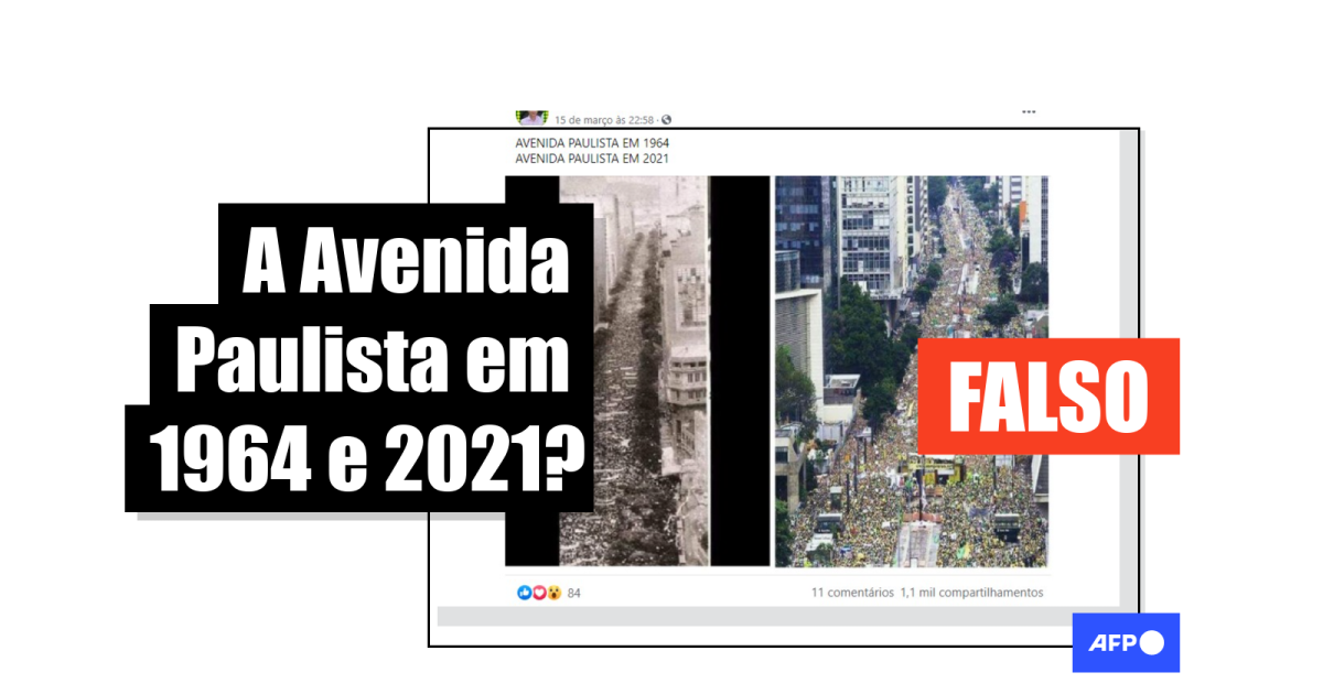 “Avenida Paulista em 1964. Avenida Paulista em 2021”, diz a legenda que acompanha as imagens em publicações compartilhadas mais de 2 mil vezes no Facebook (1, 2, 3) e Twitter desde o último dia 15 de março.