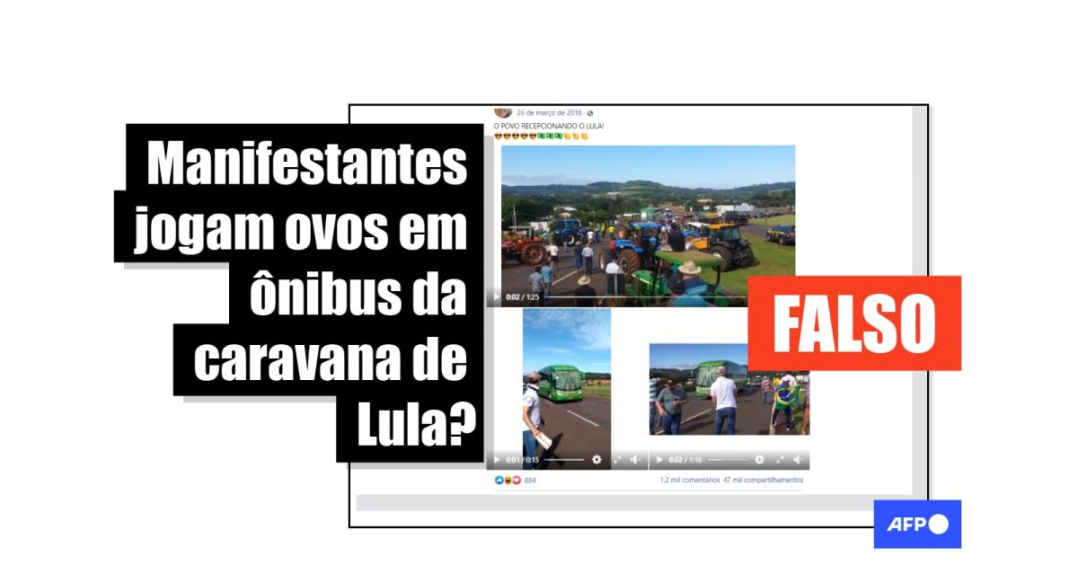 “O POVO RECEPCIONANDO O LULA!” e “A Caravana da Vergonha pelo Sul do país produziu cenas inimagináveis. Nesta, a visão da Revolta dos Ovos vista de um ângulo novo: de dentro dos ônibus recheados de petistas adoradores de Lula”, são as legendas de algumas publicações compartilhadas no Facebook (1, 2).