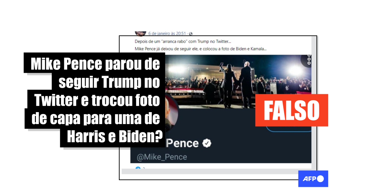 Mas Mike Pence não deixou de seguir Trump e tampouco trocou a foto de capa de sua conta no Twitter para uma que mostrasse Kamala Harris e Joe Biden.