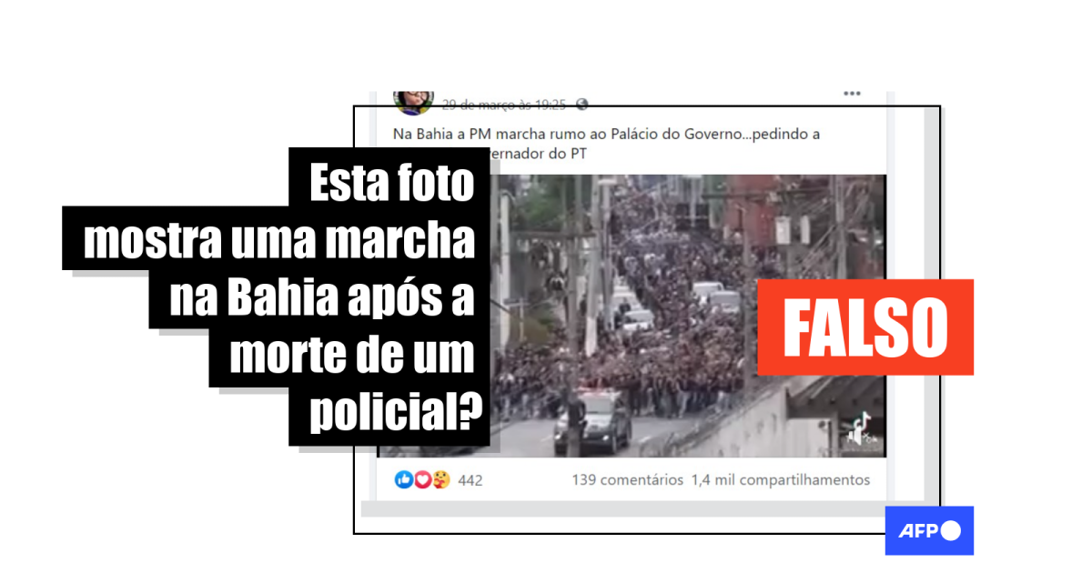 As publicações alegam que as imagens são de um protesto no último dia 29 de março contra o governador da Bahia, Rui Costa (PT), pela morte, no dia anterior, do cabo Wesley Soares Goés em uma ação policial em Salvador depois de ter disparado para o alto e na direção de agentes de segurança.