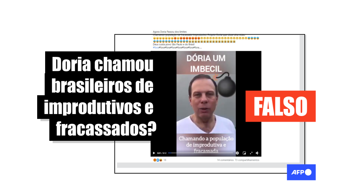 “Agora Doria Passou dos limites. Chamando população de fracassado improdutivo. Próprio Doria que disse olha vídeo”, diz uma das publicações, que foram compartilhadas mais de 4.500 vezes no Facebook (1, 2, 3) e Twitter desde 19 de março e voltaram a circular recentemente.